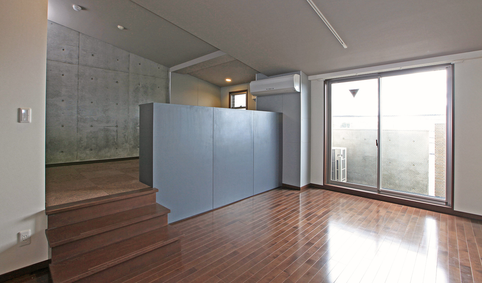 ゆるゆるとした坂に沿った敷地の高低差を内部空間に生かした、5タイプ全9戸の広めの住戸は、プライベートゾーンとワーキングゾーン、パブリックゾーンが、スキップフロアによって緩やかに分離され、シングル・カップル・ソーホーなどの様々な住まい手のライフスタイルに対応しています。